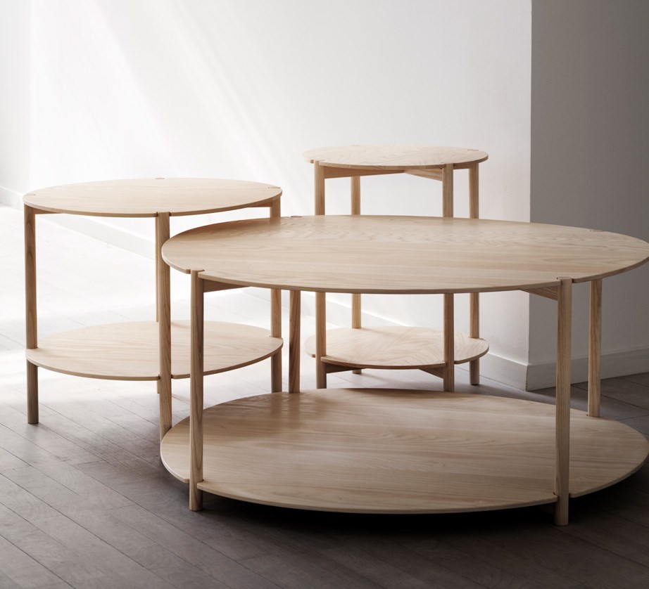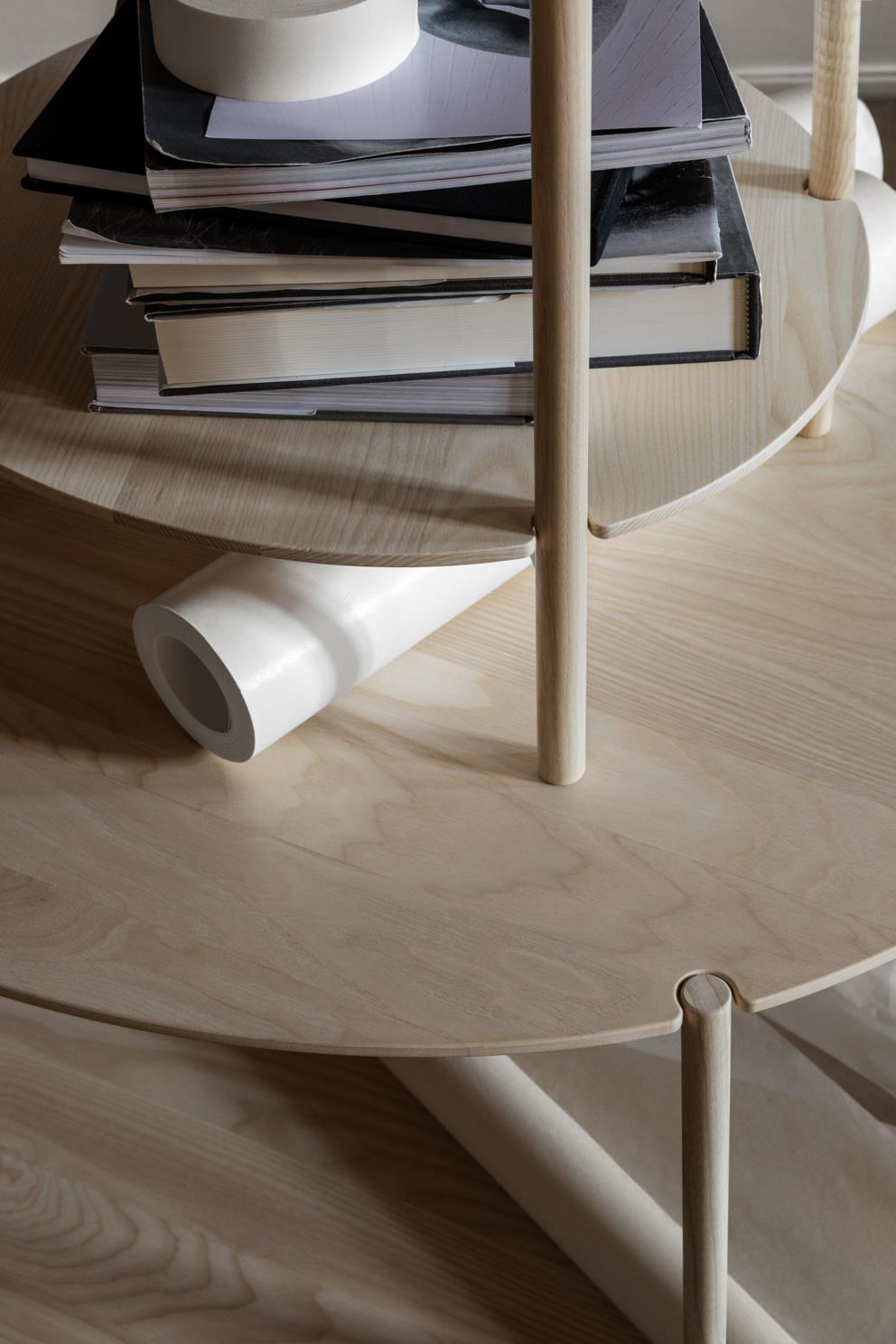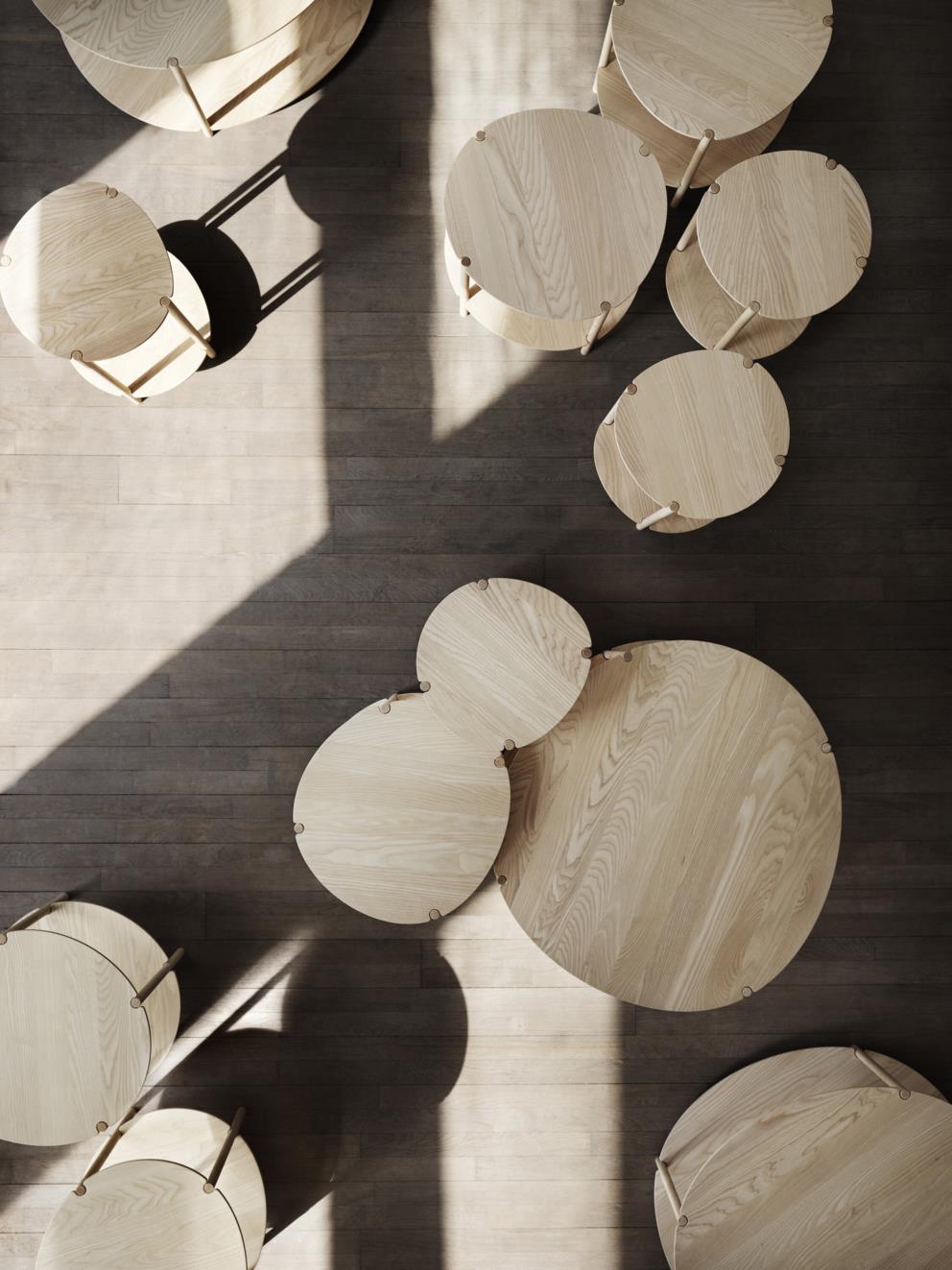 تعتمد شخصية Lunaria على استخدام الخشب الناعم والدافئ والأشكال الدائرية الدقيقة وغير المعتادة لألواح الطاولات.