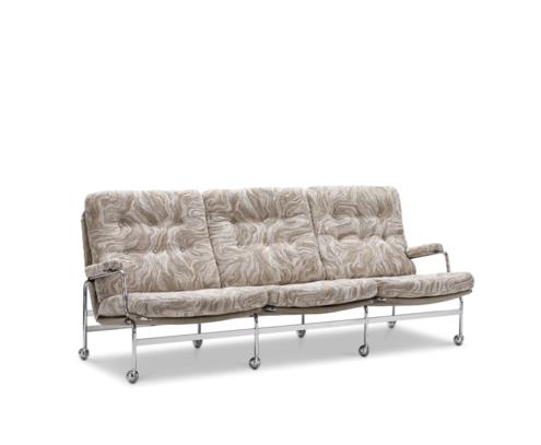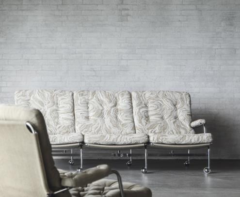 توفر هذه الأريكة الأنيقة ثلاثية المقاعد القطعة المثالية التي ترافق كرسي Karin الأصلي بمسند للذراعين، الذي صممه "برونو ماتسون" في عام 1969. ويعتمد تصميم قطعة الأثاث هذه على المجموعة الكلاسيكية، مع توفير وسائد محشوة مريحة تستقر على إطار مطلي بالكروم مع شبكة داعمة. بالإضافة إلى الأرائك والكرسي الأصلي، تتميز مجموعة Karin أيضًا بمسند للقدمين وطاولات متوفرة بأحجام متعددة.