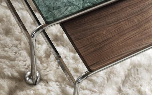 استنادًا إلى طاولة "برونو ماتسون" الأصلية، المصممة لمرافقة كرسيه الكلاسيكي، يوفر هذا الخيار الأكبر حجمًا بقليل المزيد من المساحة السطحية، بالإضافة إلى الجمال الأنيق نفسه الذي يميز مجموعة Karin. الإطار المطلي بالكروم مطلي بطبقة علوية من الرخام، أو الحجر الجيري، أو خشب الجوز المستخدم خصيصًا لهذا المنتج.