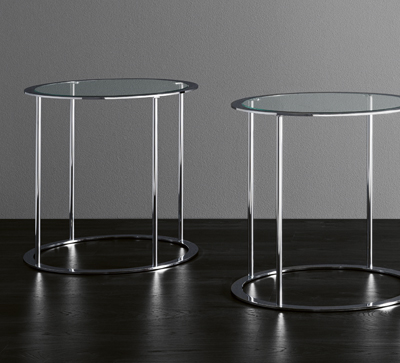 A classic round table in chrome, with a larger top diameter than its smaller counterpart. Featuring manual height adjustment and a marble base.