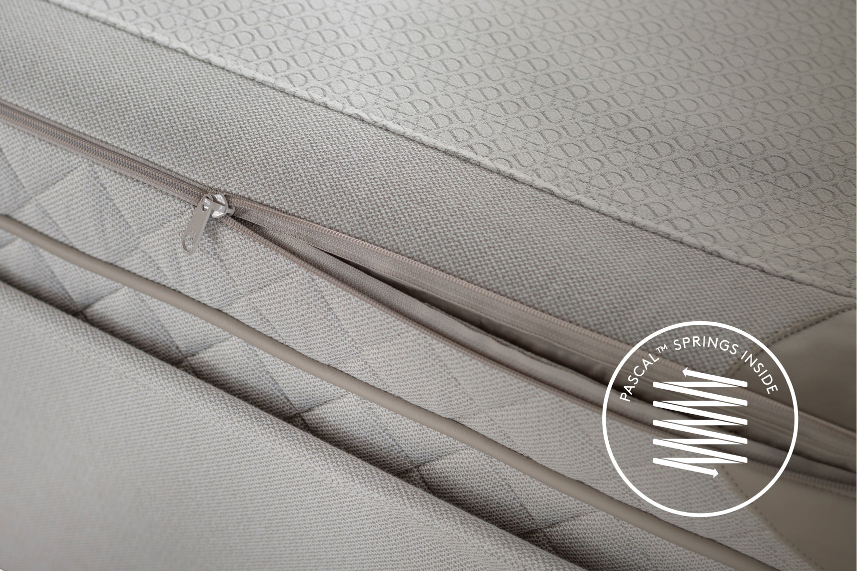 The top layer of The DUX Bed with Pascal can be unzipped to reveal six interchangeable spring cassettes; three for each side. You can arrange the cassettes based on your body size, shape and needs.